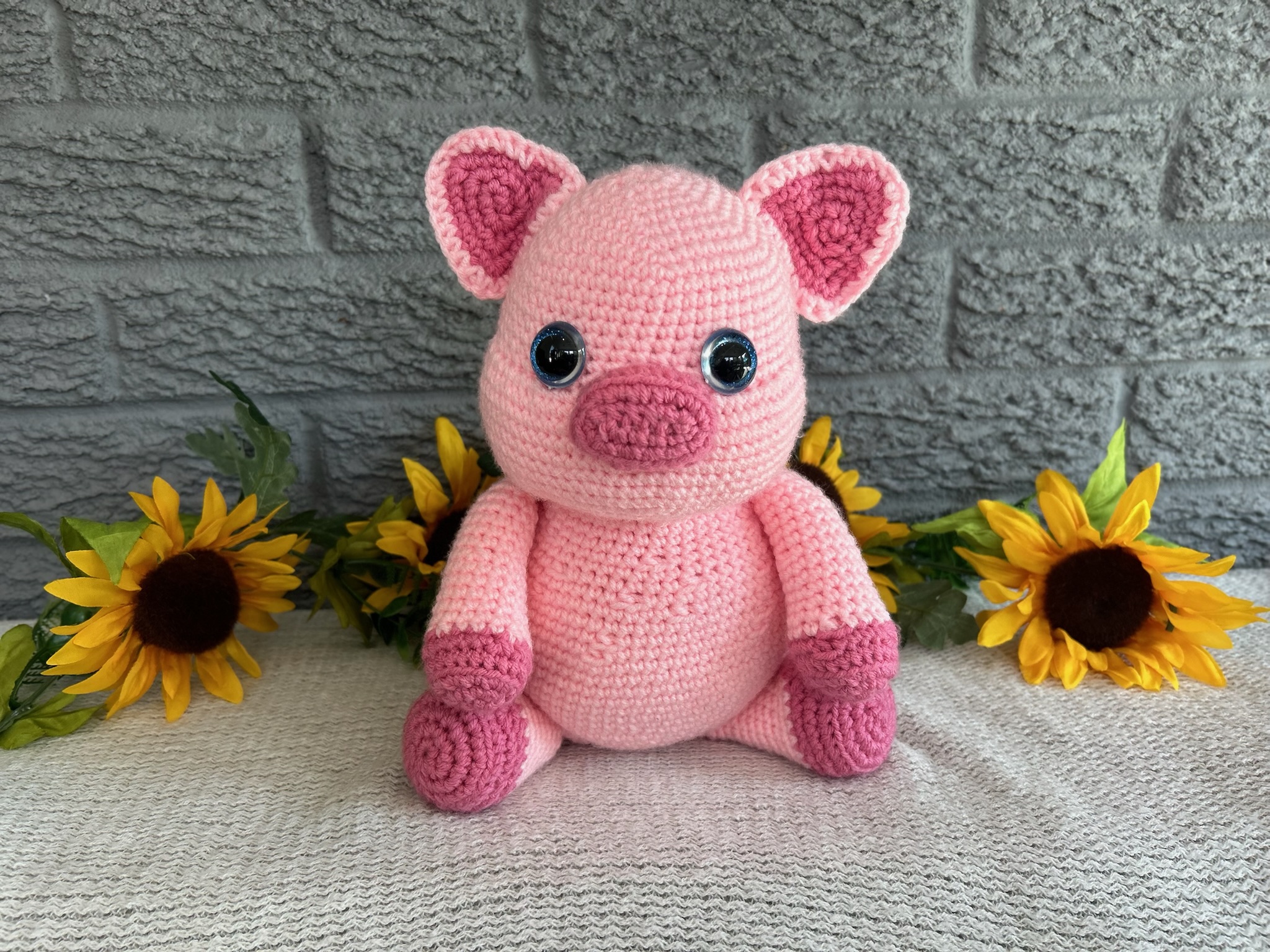 Introducing our adorable hand-crocheted stuffed pig, the perfect blend of softness and charm that will bring joy to any space. Lovingly crafted with premium soft pink yarn, this cute and cuddly pig is an ideal companion for children and adults alike. Whether you need a unique gift, a playful nursery decoration, or a huggable friend, our crocheted pig is here to make your day brighter.